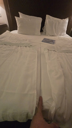 We booked a room with "king-sized" bed - we got two twin size beds joined together. The bedding, specifically the comforters are so tiny they were made for kids. I had to request a "full human" comforter which is annoying.