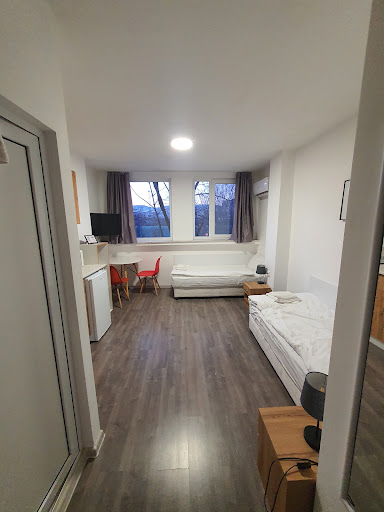 Read moreСтудиата се намират в индустриялна зона далеч от центъра, в сграда без асаньор, н 3 етаж. Районът е тих, въздухът чист. Удобно паркиране. Може да се настаниш когато искаш, има кутии с ключове, както и при напускане само ги връщаш, което е много удобно. Хората са много любезни,изпращат изключително подробни указания как да влезеш,да откриеш стаята си, има и инструкции как да стигнеш до жп гара. Стаята ни беше чиста като изключим замазаните вратички на шкафовече и тук там чужд косъм. Чисти чаршафи,банята е малка,но досттъчна, има течен сапун,веро,гъба, кухненско онорудване. Обзавеждането изглежда ново, има телевизия, безплатен интернет. Бойлера беше включен. Идеално е за нощувка или две, за раотна бригада. Наоколо няма ресторанти,но има вендинг машини и маси с пейки пред сградата. Много сериозно видео наблюдение. Хареса ни. Благодарим...