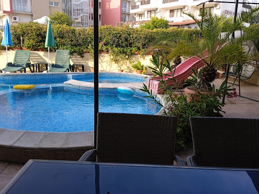 Read moreПлюсове - ресторанта е с добра храна, имат обедно меню. Сутрин можеш да закусваш, мекици, палачинки и др. от менюто. Стаите са с тераси, достатъчно големи. Минуси - Най - големият е дискотеката до хотела. За нея не важи правилото да спира в 23.00 часа, до 4/5 часа сутринта. Дори на затворена врата се чува. Не почистиха стаята за 5 дена, нито веднъж, не смениха кърпите. Паркинга, ако ще е паркинг за клиенти да е такъв, а не склад за разни неща, достатъчно тесен е. Може на колоната и стената на изхода да се сложи гума, в която ако се случи да опре колата, не да има вероятност да се одере. Възглавниците може да се подменят, тези пълни с квадратни донапренчета не са удобни. В душ кабината е хубаво да има къде да си сложиш гъба, душгел и др.. И може да има кошче в стаята, а не ненужна ваза с украса. Просто малко освежаване на базата е нужно. Като цяло има потенциал да стане още по...