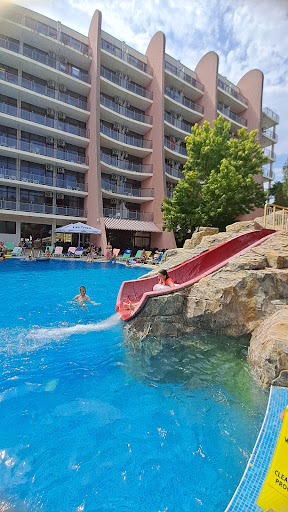 Read moreI'm having a weeks holiday here on an Ultra All Inclusive deal. Whatever that is. The good points: The hotel is a beautiful building with some nice seating areas outside and inside. There is a free shuttle bus to Nirvana beach which is a 10 minute drive. You also get 2 sunbeds and a parasol complimentary for the beach per room. The sand is the best I've been on and the sea is lovely and is warmer than the Med. We get a 1.5litre bottle of water every day in our room too which is such a nice touch and I've never had that in Spain or Europe. The bar areas are small and probably should be larger, but the staff are very friendly and helpful. The local beer isn't as strong compared to the local bars. The pool area is clean and tidy but can be a bit of a squash when people chase the sun as the hotel shades it around noon. The animation staff work very very hard top. Our room is nice and large with a good balcony and cleaned well every day. The local bars and shops are a short walk away and there are some great deals to be had. Sadly here are the Bad points: The dining hall is far too small for the size of hotel and it creates mayhem after 6.30 when evening meals start. It should be twice as big. It is so badly organised and the poor staff seem to be running around like startled deer! They need to be able to cater for the number of guests. Lots of guests were bringing their plates and food into the reception and bar areas which is ridiculous. We didn't get a table until 8.15 last night and by that time some of the food wasn't being replenished which is poor service. There is not a large selection of different foods unfortunately and it's very repetitive and pretty predictable and in a lot of cases not hot either. I give it 4/10 maximum. We've eaten out at a local restaurant and it was fantastic. I've never had to do this on an all inclusive before. Unfortunately, a lot of our fellow hotel guests from eastern europe are not as courteous as we are and their manners are shocking. We have to be on our guard as they are also not too keen on queuing up. They are also very greedy and pick up far more food than they can eat and then just leave it which means less for other people. I counted 10 slices of bread left on 1 table last night and that was not an isolated incident. I know it's hard to police on an all inclusive holiday however. I suppose it's just their nature. All in all, it's a lovely hotel in nice surroundings but its spoilt by the food arrangements. Balkan Hoildays...