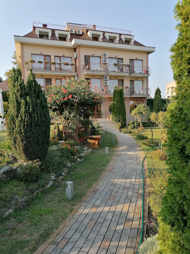 Как только впервые увидела фотографии этого отеля в интернете, сразу поняла, что хочу только туда. Первое впечатление не подвело. Отель чудесный! Да я и отелем его назвать не могу. Всю неделю отдыха нас не покидало ощущение, что мы в гостях у близких друзей или родственников. А иногда и вовсе думалось, что это наша собственная дача. Тишина, покой, беспрерывное воркование птичьего зоопарка и просто волшебный сад. Конечно, нам немного повезло. Самое начало июня, еще прохладно и мало отдыхающих. Когда мы приехали, в отеле была только большая и громкая румынская семья. Четверо детей беспрерывно галдели у бассейна и в саду. Но когда они уходили на море, мы просто плавились от блаженства. А когда они уехали мы остались в отеле только с двумя русскими женщинами и их маленьким ребенком. Вот тогда и пришло полное ощущение, что мы дома. Кстати, многие пишут, что этот отель очень хорош для детей. Я бы поспорила. Отельчик очень маленький, камерный и присутствие даже одного ребенка разрушает всю прелесть и очарование. Никто из любящих свое чадо родителей не задумывается о том, каково всем остальным рядом с их неугомонным пупсиком. И спрятаться негде, и такое ощущение что чужой ребенок уже живет в твоем номере. Подумайте об этом, дорогие родители, попробуйте уважать своих соседей! Хочется сказать несколько слов о хозяйке. Елена - это вечный двигатель, который везет на своих плечах весь бизнес. Ни одна даже самая мельчайшая деталь не ускользает от её цепкого глаза. Она все время на посту. Когда она спит и спит ли вообще? Отдыхает она зимой, когда в пустом отеле вышивает прекрасные гобелены, которыми увешаны все стены. На прощанье и нам была подарена чудесная вышивка-розочка. Теперь стоит у нас на трюмо в спальне и напоминает о гостеприимной Болгарии и о чудесных розах в саду Елены. ||Приехали мы поздно вечером, о чем заранее предупредили хозяев. Нас ждали, приготовили для нас номер на втором этаже. А мы захотели на третий. Елена не выказала никакого недовольства. Просто попросила подождать 5 минут. Пока мы вытаскивали из машины багаж, все уже было готово для нас. В номере было чисто и уютно. А на столике ждали тарелка черешни из собственного сада и бутылочка белого вина. Это было так трогательно и так приятно! Спасибо!||Был оплачен завтрак, но мы на него так ни разу и не попали, так как любим подольше поспать. Елену это немного расстраивало, но она была благосклонна к нашей лени. В номере было почти все необходимое - кондиционер, телевизор, очень хороший wi-fi, холодильник, балкон с москитной сеткой и со столиком-стульями. В отеле предусмотрена гладильная комната - очень удобно. Из минусов отмечу следующее: 1. повсеместный болгарский прикол - отсутствие душевой кабины (вода просто течет на пол, забрызгивая все вокруг, как-то не комфортно); 2. тоже общеболгарское слабое место отсутствие темных штор на окнах, с 5 утра невозможно спать; 3 - отсутствие фена. Все остальное на должном уровне. Сам курорт св. Константин и Елена навевает легкую грусть, кругом видно запустение, нет никакого обновления, нет твердой руки. Всё как было построено в советское время, так и стоит. В принципе, разрушается... Нет никакой инфраструктуры, которая есть на всех других курортах. Несколько ресторанчиков, пара магазинчиков, в принципе плохой пляж...Если бы не ностальгия по советским временам, понять т