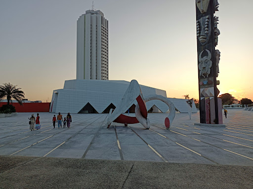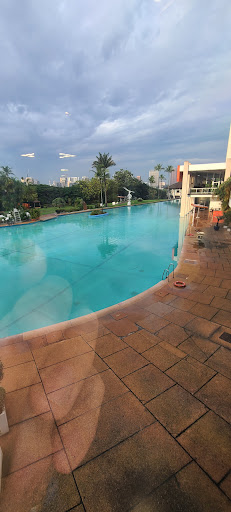 The Sofitel Hotel complex is yet another example of the excellent architecture that exists in the Ivory Coast. Designed by Belgian architect Pierre Fakhoury, the hotel is comprised of two two towers, one built in the early 60s and the other in the late 60s. The two buildings are connected by a gallery that also leads to the conference center; at the far end, you will find the casino and a small conference/meeting room which resemble two circular paillotes. The complex has five restaurants, three which are located in the main tower area: the Le Toile, with a 180° view of Abidjan and the lagoon on the 14th floor of the tower is the more luxious one; another which overlooks the swimming pool and has a very tropical atmosphere; and a French brasserie with a very contemporary décor in dark wood, black and gold details. There is yet another restaurant near the secondary lobby, with many beautiful details that are reminiscent of African cultures (I do not know if specifically Ivorian), and another in the Casino building. The hotel also has a couple of bars, one in the main lobby and another one by the swimming pool. The two lobbies are beautiful but very different from one another; one is more contemporary and sophisticated, and the second one, more run-down, with a '70s atmosphere, with leather sofas and mirrors on the walls. A pool winds organically along the several buildings, allowing temperatures to cools down. The garden area, where the above mentioned swimming pool is located, as well as a regular swimming pool, is dotted with several trees and bushes and has a giant chess game that guests can play with. Off the hotel's main lobby, to one side one can find a SPA, and a few shops and a cinema to the other. Staff is very attentive and friendly. I was a guest at the hotel, but did not stay in one of the rooms. Sofitel definitely has all the perks of a five star hotel and hopefully it will continue to demonstrate to the world how premium quality can be attained anywhere.