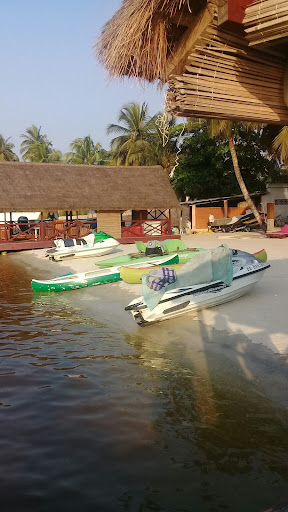 We have family visiting and arranged to spend a few hours at Chez Rodrigue. We called and made a reservation for our party of 5 adults, 2 teens and 4 children aged 6 to 12. A boat picked us up in Bietry about 10:45 January 5th, 2017 and we were on the ile after an aproximately 20 minute boat ride; there were enough life jackets for all passengers.||We had a warm welcome and pre-ordered lunch. It is a cosy beach with lots to do for the kids; jet ski, canoeing, trampoline, and a playground. Although the food portions were a little stingy (brochette de gambas & poulet entier braisé) I will visit Chez Rodrigue again; I want to do the bike 'safari' to the lake...