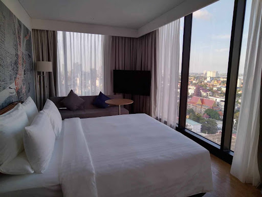 It is a wonderful addition to Phnom Penh and I had a great stay. The location is great with many wonderful restaurants just beside the hotel. So it's a very convenient base to explore the city. I could see the river and the royal palace from the floor to ceiling glass windows in my room. Nice views.