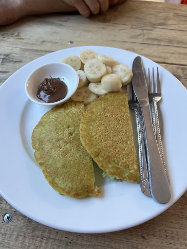 AuĂerdem kocht sie (als wir da waren nur gelegentlich) sehr lecker, wir hatten litauische Pfannekuchen (ĆœemaiÄiĆł blynai).