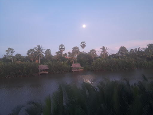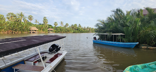 This location is wrong. I already suggested to change the location in the Google Maps. Here is the correct location (Lat-Long: 10.653113,104.181828). This resort is very clean and good bedrooms. Nice views, gardens, swimming pool and parking space. You can rent to ride the kayak or speed boat along the canal. There is a playground that children will be enjoyed. There is a restaurant here and you can sing songs freely. The price of weekdays and weekends are different. For weekdays will be 30% off and weekends will be full price (around 70$ per Bangalo with 3 beds and 2 toilets). You can ask more information if you can bring your own foods...