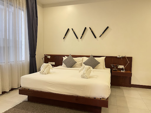 Read moreExcellent & convenient location to the famous pub street in Siem Reap, only a few minutes walk away. Laundry service shop just few buildings away, US$1/kg for 8 hours service which is so handy. We booked the family room which is spacious and bed is comfortable. Lighting is a bit too dim everywhere in the room. Not sure how much effort is put into cleaning but the shower (slimy mouldy corners), bathtub (with stains), Venetian blinds (super dusty) could do with more cleaning. Feel like shampoo is exactly the same liquid as shower gel, just filled into separate bottles which is very drying on the skin and hair. If you are conscious about your hair and skin, better to get your own. Beware the glass shelving in bathroom has sharp corners, almost cut my scalp after getting up from trying to pick up things that fell in the corner. Toilet tissue is awkwardly fixated in the toilet, makes it very difficult to get it while sitting on the toilet seat. Although they do replace most of the amenities in the room, we’ve had to ask for new soap block which was not replaced at all (no other handwash provided) Our room had a balcony but it only had one chair and views of the alley between the adjacent building so was pointless having a balcony unless if you are a smoker. Hotel has no lift and no staff came to offer assistance to bring up...