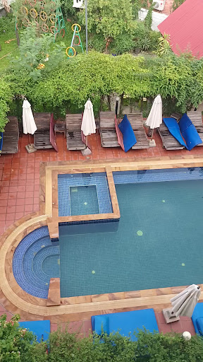 The pool was nice however two hard basketballs 24/7,bang bang bang,splash in the face with force and the cleaner started cleaning the pool @6-7 and still going gone 0900 daily(good hygiene but in your own time.....like I said, a hostel)No early morning swim or in with the chemicals or basket ball players later on, no peace by the pool and nowhere near enough seating. I got in early accidentally when the treatment was in and when the staff finally came told us I asked why no sign, he pointed to a sign (the yellow slippery surface one)I saw the cleaner put out before she mopped the floor, how was I too know that ment "chemical hazard" too. To let the lady's who knows what I mean but the PH is f'd down there now....
