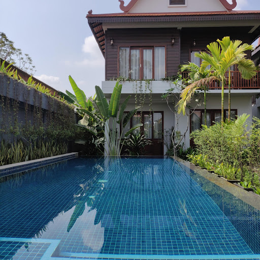 Gorgeous place. We left it today for another hotel in the city center and, frankly, it was a mistake. We thought we wanted to try something else while in Angkor, but I wish we hadn't. It is a very secluded, nicely furnished place with a good clean pool and welcoming staff. Several drawbacks though, which led us to a decision to try some other place: the timber stock is right behind the villa, and they are noisy with moving planks, but this is quite ok. Another more important issue is the ground floor. The construction of the houses is very unique though has it's minuses - the walls are kinda perforated and so no a/c can cool the room, so it's is never comfortable to stay there because of the heat. Maybe the owner should think of more fans or something. It's also not that close to the city center so you will have to take a taxi all the time you need something, because nearby there is only a laundry and a drugstore. Take into consideration that taking a bike will be around 13$ a day, and a taxi -2$ per ride, so in case you don't need to drive far and/or are afraid to drive Cambodian way, take a taxi. In general, we really liked the place. I wish you have many visitors. P.s. wi fi is poor so in case you need video call or sth, buy...