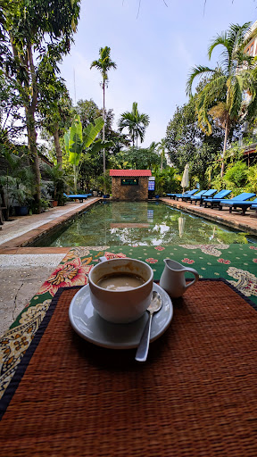 HIGHLY recommend Nary Villa in Siem Reap. Wow! I could almost cry upon leaving I loved it so much. The owners and staff were so nice and greeted me every time I walked by. There is an electric kettle in the room and they give you bottled water and instant coffee/Lipton tea bag for your room each day they service it. My TV didn't work but I only attempted on the first night and forgot to let them know bc I wasn't there to watch TV. Met a lot of great people here during breakfasts by the pool. Everyone sharing info & stories. The owners of Nary Villa go above and beyond to make you feel welcome and help you book whatever you need. There is a spa on site (~$10 massage 60 mins!). They can book tours for you, rent bikes, scooters and super helpful at answering questions, all on-site. Rooms & bathrooms are clean. Bathroom is open layout with shower and no door but has a full length mirror next to desk. Also a love seat couch! I chose a room on 3rd floor for the view and sunrises did not disappoint. The pool was always nice to cool off in the afternoons Super easy to walk anywhere from here and be picked up for tours. Felt extremely safe here as a solo female traveler. I forget if they do other meals during the day but I did breakfast here for $3-5 USD. This included coffee and a dish (they have eggs, yogurt and oatmeal, fruit, local dishes, etc) I will absolutely stay here every single time I come here. I left feeling almost like family. សូមអរគុណ (Arkun -...