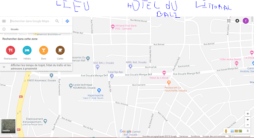Situé à: -1km du Marché Central de Douala, -1,5km de Bonandjo,le quartier administratif de Douala, -2kms de Akwa le quartier commercial de Douala -2kms de Bonapriso la zone des expatriés ~50 FCFA/km place partagée moto heure creuse. Les motos n'entrent pas à Bonapriso...