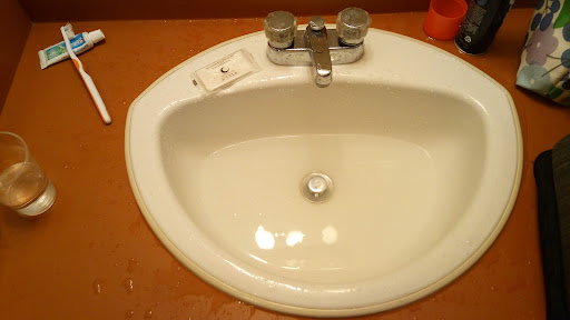 Read moreThe only reason I'm giving this review was because I ate at the Red Rock Grill which is attached to the Red Coach Inn and the bathrooms for the restaurant patrons belongs to the Inn. I did not stay at the Inn. I did have the misfortune of using their lobby bathrooms though. They are cold and dank with the farmiliar scent of minimum effort in cleaning. Gray, dingy painted cement floors with a beat up yellow paintjob for the walls. A metal, industrial grade toilet partition unsurprisingly creates the distinction of a truck stop facility. Shockingly modern thinking for the demographic the bathroom portrays, there is a baby change station in the stall which I wouldn't dare place my child considering the state of the rest of the room. A small $1 plastic pale accents the stall with a label maker label specifying it is to be used for used diapers. After doing my business accompanied with some light reading from the graffiti carved into the drywall, the toilet helpfully has instructions taped to the top of it so you know you need to stand there and hold the flusher for the complete 50 second cycle to ensure there was no proof you were ever there. The only positive to the experience: the door out is a push so my clean hands don't carry any of this disgusting place...