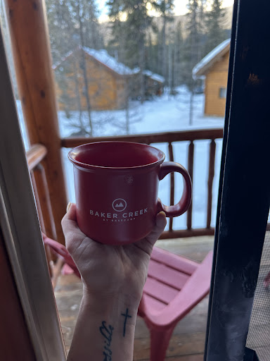 Read moreWe booked baker creek for 2 nights for a short trip to Banff/Lake Louise. We had stayed in the fairmon banff the day before and were disappointed that such an expensive hotel came with little to no percs etc. That is NOT the case with baker creek. We stayed in cabin #34 and couldn't have been happier. We booked on Expedia and got a discount. Specifically booked this cabin for the fireplace and wasn't disappointed. For someone from the states who usually has to pay $5/bundle of firewood at an average campground, it was fantastic to have free firewood available right on your porch. Not only that, but they'll give you multiple little little kindling bundles wrapped in newspaper, and matches. The office has skewers available for free as well for hotdogs/marshmallows. Cabin was very cozy, very clean. Microwave, mini-fridge, instant hot water pot, French press, toaster are there. Firepits by the river with multiple chairs around each. I think we had the best cabin location for the winter because: the river was frozen over and those firepits weren't usable, we were the furthest from the main lodges and from the train tracks so it wasnt as loud and we couldnt see it. Yes, there is a train that comes by quite often, seemed like every hour. However, it never sounds it's horn, and it's white noise. There is a furnace in the cabin. But we rarely used it because of the fireplace. The fireplace also has an internal fan, so either the furnace or the fireplace will cover the train noise. There's a gym in the basement of the main lodge with steam/dry saunas. Didn't seem like anyone was using it except for when we wanted to go to the sauna and it was inevitably overflowing with children. But we had a spa tub in the cabin. Small good items/snacks available in the office for sale. Otherwise there's a decent market in lake louise 15 minutes down the road. Better to stop at IGA in banff on the way. All and all...