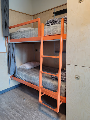 The dorms are spacious, clean and cozy. I liked that each bed had a privacy curtain, light, shelf and outlets for charging. The lockers are large enough to fit multiple backpacks (bring your own lock). It was convenient to have a washroom and shower inside the dorm, but you can also book dorms for cheaper with shared washrooms/showers outside of the dorm.