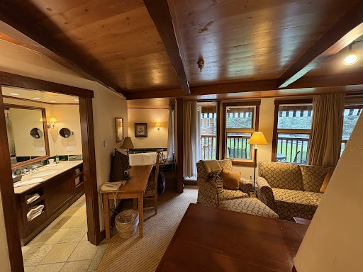 Read moreWe had two nights’ stay in a suite at the Post Hotel for my birthday treat and the hotel was wonderful - snug and log-cabbiny with magical Christmas decorations. However, we unfortunately found the food to be very overpriced and pretentious, and we actually left hungry, which really spoiled an otherwise lovely experience. If you’re fortunate to have an unlimited budget and love fine wines and nouvelle cuisine then perhaps you’d disagree, but we were underwhelmed by the food. For breakfast at $24 pp, I had one slice of avocado toast and Mike had 3 smallish, plain blueberry pancakes. Tasty, but not filling when you don’t eat lunch. We could have added the $14 “buffet” which was a small continental spread. After a day of hiking in the cold and swimming lengths in the lovely pool we were really looking forward to dinner, but once seated we discovered that there we were expected to pay $145 per person for a 4 course dinner. I find it very hard to justify spending that amount of money on one dinner (without drinks) when so many people are struggling to make ends meet. So, I very embarrassedly asked to see a menu with prices which we were reluctantly given. We shared a salad (small with bitter Brussels sprout leaves) and had the duck entrees (slices of rare breast with a beet and a little cabbage) and the bill still came to well over $200 with a drink each. The booking was also weird - we could only get a 5:45pm slot and the place was almost empty. The rest of the experience was excellent - our leaky Jacuzzi tub was fixed immediately and our suite had a bathroom each and a wood fire. We’d did wish that we’d asked for a suite at the back as our room overlooked the parking lot and the trains went by all night, but that would have been a bigger issue in summer. If I was in charge of the hotel, I’d just change the dining experience - maybe serve the 4 course meal, but also have an a la carte menu with lovely, hearty, warming foods like stews and soups. Also, less people are drinking alcohol these days, so I’d also add more non-alcoholic, creative drink options. Essentially it’s a lovely, old-fashioned, charming log-cabin hotel and i think it should stick with lovely old-fashioned, delicious, hearty, winter food - then it...