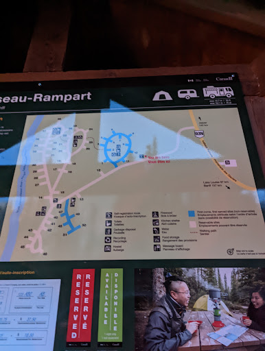 We stayed here for 3 nights between our visits to Banff and Jasper to give us ample time to explore the sights along the Icefield Parkway. Located just 20 minutes south of the Icefield Centre was an ideal location. Plus the park was quiet and peaceful in a setting enough distance from the road to not hear the traffic and was along the Mistaya River. Only a couple of sites are suitable for larger rigs like ours. We were in site 12 which could accommodate our 35' fifth wheel easily. While larger rigs would fit as well, turning around would be a bit more of a problem. There are many sites right along the river that would work for tents and smaller rigs. There are no services - we dry camped. There is no dump station or camper water fill here either - so be prepared. Firewood was included in the campsite fee. There is no cell service along the...