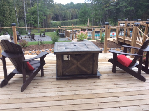 There is a wonderful central bar, lounge and patio, featuring very comfortable furniture, gas fireplaces, modern washrooms, a large natural firepit, as well as a swimming pool and a hot tub. Additionally, there are a variety of nature trails running through the property, and other activities include a volleyball court, a badminton court and a tennis court is in the works. For those of us whose main activity is turning the pages of a great book, there are many quiet spots and gazebos with comfortable Muskoka chairs and cushions to spend some wonderful quiet time.