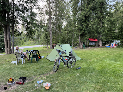 Pros: -Beautiful, warm lake access -Friendly atmosphere, lots of trees, wildlife, minimal bugs (though bring a wasp catcher) -BEAUTIFUL sites... one of the prettiest I have stayed in -There is the most amazing rushing creek that runs through the campground so even though it is right off the highway, we didn't really hear any noise because the creek dampens the sound -General store that is walking distance -Surrounding area is amazing -Little park area has lots of room for kids to roam -So much to do in the area, even during covid (hikes, lake, canoeing, etc). -Full hook ups with zero issues -Price was very reasonable for what you get