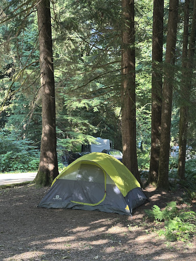 Facilities: Outhouses were fine, sometimes stinky and lacked hand sanitizer. Garbages became full on occasion but was kept up with. Firepits and picnic tables were up to standard. Roads into the park are all bumpy gravel and you'll have to follow signs as there is no cell service pretty much as soon as you enter Sasquatch park. Boat launch is good and decent parking space in the day use area. Lots of trails to explore around the lake! A park for kids was open which was nice.