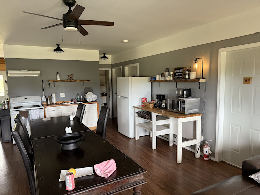 Read moreDie BBGR ist ein Paradies inmitten des Nirgendwos Schon die Anfahrt von Clinton über knapp 50 km Schotterpiste lässt einen die Abgeschiedenheit dieses Ortes erahnen. Die Ranch gehört zur Gemeinde Jesmond, die allerdings nur aus einem Briefkasten besteht. Wenn die Ranchbesitzer Brian und Amber einkaufen gehen, dann fahren sie 250 km bis Kamloops - die Menschen sind hier einfach Entfernungen gewöhnt. Wer also kein Essen gebucht hat oder Dinge braucht (z.B. Zigaretten und liquors), die es auf der Ranch nur sehr eingeschränkt oder gar nicht gibt, sollte sich vorab eindecken. Einkaufen wird während des Aufenthalts eher schwierig.||Fünf Holzblock-Cabins und ein Haupthaus mit großem Esszimmer sind auf der Ranch. Wir haben fantastisches Essen genossen, was erwartungsgemäß (zur Freude der Herren) sehr fleischlastig war - aber auch für meine Frau gabs zu jeder Mahlzeit vegetarische Alternativen.||Das Ranchleben ist ziemlich beschaulich und alle sind tiefenentspannt. Kinder, die kleiner als 140 cm sind können vor den Ausritten der Erwachsenen eine kleine geführte Ponytour über das weitläufige Gelände machen - ein Ausritt ist erst ab ungefähr acht Jahren möglich. Insgesamt beschäftigt die Ranch 38 Pferde - für jedes Sentiment und jedes Erfahrungslevel gibt es daher das passende Pferd. Ich hatte schon ordentlichen Respekt - es dürfte ca. 35 Jahre her sein, dass ich zum ersten und letzten Mal auf einem Pferd gesessen habe. Schon nach knapp 10 Minuten befand ich mich das erste Mal im gestreckten Galopp. Abgesehen von dem Gefühl, jeden Moment abgeworfen zu werden ein tolles Erlebnis. Über Hochebenen, durch Wälder, Berg rauf und runter. Mir hats Riesenspaß gemacht. Ansonsten sind wir oft auf dem zur Ranch gehörenden See gepaddelt, haben geangelt (allerdings erfolglos, obwohl der See voll ist von Regenbogenforellen) und waren mehrmals beim Bogenschießen. Darüber hinaus haben wir die Ruhe und das Ranchleben genossen. Zum Essen lässt sich ein herrliches Steamwork Pale Ale und ein grandioser Blick auf die Pferde, die jeden Abend zum Baden in den Teich an der Terrasse gelassen wurden, genießen. Brian und Amber haben in den letzten fünf Jahren mit viel Arbeit und Herzblut eine richtig schöne Insel der Erholung geschaffen (davor war die Ranch wohl ziemlich runter gewirtschaftet). Neben den Tieren der Ranch gabs dort Murmeltiere, Streifenhörnchen (die auch nachts unter dem Dach fangen gespielt haben) und Squirrels. Das sympathischste aller Tiere ist Penelope, ein Hängebauchschwein, das wenig mit dem üblichen Schweineverhalten zu tun hatte. Geschlafen hat sie bei den Ziegen oder in einem selbst gebauten Strohbett davor, suchte sich Wege in die Küche, mischte die Pferde auf oder spielte mit den Kindern der Gäste - im Schweinestall war sie eigentlich nie.||In einigen Bewertungen liest man von Mängeln bei der Sauberkeit. Wer *-Luxus und sterile Keimfreiheit erwartet, sollte dort besser nicht hin fahren. Ja, es gibt Spinnen, man kann auch Staub finden und man kann auch ins halbleere Glas schauen. Angesichts des gesamten Ambientes, der Landschaft und dem Besonderen dieses Ortes, haben uns kleine Unvollkommenheiten nicht gestört. Bleibt noch das WLAN zu erwähnen. Unserem pubertierenden Sohn war es weder stabil noch performant genug - und ja, er hat natürlich recht. Aber uns war das eigentlich egal. Kleiner Tip: Neben dem Standard-WLAN-Key kann man sich auf Nachfrage noch einen weiteren Office-Key besorgen. Damit gehts dann wirklich besser - aber wer will dort schon Netflix-Filme streamen.||Vier Nächte waren wir hier und hätten es wohl auch noch länger ausgehalten. Insgesamt sicher kein Sonderangebot zum Geld sparen, aber aus meiner Sicht...