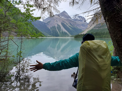 I've had the pleasure of backpacking the Berg Lake trail 3 times in the past 20 years, and recently, I decided to just enjoy a day hike to Kinney Lake, I didn't even realise what I had been missing by dedicating time just to this first lake. Spending the time to just go and relax for the day by Kinney Lake was the best decision I've made. The walk to is such a beautiful forest walk, with a well-defined and open trail. Once you're at the lake, there are picnic tables and a covered rest area to take advantage of, or you can sit and enjoy the rocky beach. I might just have to plan a day hike here again....