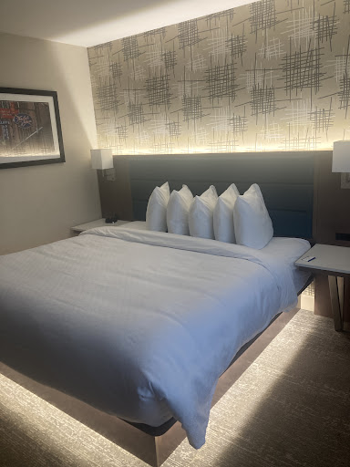 I stayed here for a week while attending a training course at NAIT, only a 10 minute walk away. Kingsway mall is directly across the road with shopping/food/entertainment. All the staff interactions I had in my week were top notch, they were all very pleasant and helpful while also coming across as genuine. Rooms are fairly priced, clean and have comfortable beds and nice fixtures and finishes. Very quiet building, even when booked full my room was quiet. However, roughly 1/2 the building has motel-style rooms (that is to say, the bathroom is in the rear of the unit and there is a door/window at the front) with a central hallway built out to connect all the doors. As such, the hallway has plenty of windows for light because all these rooms still have windows, they just look out into the hallway. As a result of this, I kept my blinds drawn for my whole stay, not wanting people to be able to look in as they passed by in the hallway. Along with this, the pool is in a bit of a weird spot. it’s right off the main lobby, meaning you must walk from your room all the way to the entrance and enter literally opposite of the check-in desk. The pool is nice, a little small but has a really fun water slide and hot tub. There is a Tim Hortons located in this hotel as well as the restaurant right above it, they have a $9 breakfast special for hotel guests. Had a great stay, would probably stay here again if I needed to be...