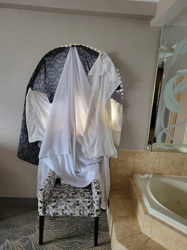 Not a good start, when hearing a rumor from another client who was changing rooms. I will not go into the details as there is no proof on this strangers claims. After a very long trip, and booked for 2 nights, we had to make a decision, and we just wanted to unload and rest. So we took our chances and stayed the 2 nights. It was ok, but the hotel lacks the care for details. Like 'white' comforters should be white. There was a yellow stain, faded, but I still noticed it on the corner of the comforter when I turned down the bed, so I stripped the bed, and turned it, so it was at the foot of the bed and turned upward, so it would be under the top bed cover (took a pic of that) but, then 2 hairs on the bottom pillow case (no picture) again, tired, so shook it off and tried not to think about it, things could be worse, but gawd, the thought that the bed sheets might not have been changed kinda creeped me out, but I'm sure if I had said anything, I'd be assured, that they were changed. |The room was ok, we had the jacuzzi room. The room had a round window that once had a velcro cover, but it was not there, so the sun came right in through that window in the morning, while the others were blacked out, it didn't matter. Details...they need to fix that, I mean really, what is the point of the other curtains and black out curtains on them, if there is a window that can not be covered, and lets sunlight in? Details...when I went to use the restroom for the first time, I was going for the toilet paper and was immediately eewwed because I thought a hair was draping on the toilet paper holder! Wrong, it was Not a hair, but a fine crack on the porcelain that made it look like a dark hair...and then I go to wash my hands, and bloody hell, if I don't get the same Eeewww in the sink! A fine line crack, looking like a hair lying across the sink! Oh my, I'm glad they were just cracks, but cracks, especially in a sink will hold germs for sure. Big yuck on that. If renovations have truly taken place, details like a cracked sink or anything cracked needs attention.|The Front Desk Staff: I'm not sure, but I don't think they like their job much. Service was mundane, not friendly, more matter of fact to the point feel, like lets just get this job done, and be done. Almost felt like, instead of being a valued customer, you're a burden.|BEST experience at the Monte Carlo Inn was the breakfast! We paid the extra the first morning to add the bacon and eggs and hash browns, and the next day just had the included continental, lots to choose from. BUT the Very Best part of the breakfast experience was "JEN" the dining room attendant, Nice, Friendly, Professional, and totally on her game! Don't let that employee go, Monte Carlo Inn, she's a keeper. She was the best part about the entire Hotel, her service was excellent.|Would we stay again. I can't say that we would, with so many other places to experience. It wasn't horrible, but it wasn't great...