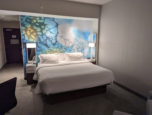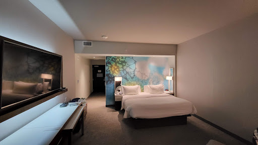 Soon to be connected to the REM train station when it's up and running. There still is not much open in the immediate area but I imagine there will be more restaurants and businesses open up in the next year. If you don't mind walking a little there is a cinema and shopping center nearby. Parking is behind the hotel and underground so it's protected from the elements and free for hotel guests for now. For the Marriott Bonvoy members at the Titanium and Ambassador levels there are dedicated parking spots available. As a Platinum member or above you will have a choice of 500 points or 10 USD for up to two to spend in the pantry. I was upgraded to the executive floor with my room preferences followed. There are not a ton of suites available due to the larger families booking them so only expect and upgrade to a suite during low season. I was very happy with my room on the executive floor.