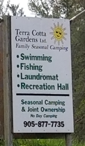 Terra Cotta Gardens is privately owned. For those people who want to walk trails there is a conservation area further down the road. There are 2 playgrounds, one is for smaller children. 2 sets of public washrooms. And of course all dogs must...