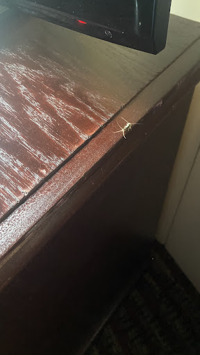 The room was not as clean as I would expect a room to be. Something had been spilled all down the wall beside the night table, the ceiling in the bathroom looked like it hadn't been washed in a while, there was garbage between the mattress and the box spring. The shower head and faucet in the tub did not run independently of each other, so when you turned on the tap you had water running out of both, and it looked like it had been that way for a good period of time.
