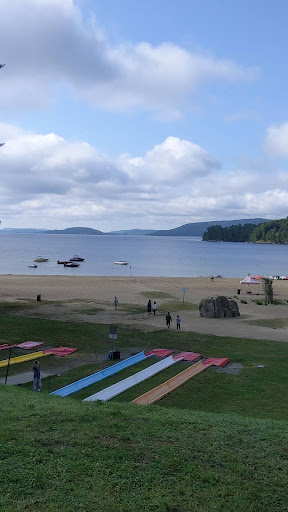 We stayed here for 2 nights. Our kids (9 and 6) loved the playground equipment on the beach. There was a giant bouncy pillow, 2 large slides going down a hill, and 3 even larger slides next to them. A jungle themed play structure (like you get at indoor play areas), a smaller 'pirate ship' play structure, and an upside down cone shaped round about that you could climb on, and a rock climbing 'rock wall'. There was a big sandy beach and a lake with roped off sections for swimming or boating. Motor boats were allowed on the lake, but there weren't too many. A life guard was watching one of the roped off sections of lake. The lake was quite picturesque - will rolling tree covered hills surrounding it. There was a store at the beach, and you could rent BBQ's for $5.50 for 30 mins. The store also sold ice-cream (between $2 and $4). Mini-golf was a short walk from the beach (about $5 each), although we played it as one of the organised activities - and so it was free for that hour. It was fun, but wasn't in the best of shape - some of the 'green carpet' was coming up in places - but I guess that just added to the challenge. ;) We stayed in campsite 230. We had big tree trunks around us, with a canopy overhead - but we could see all our neighbours, as there were no shrubs on the ground. The campground felt quite 'natural'. there were surprisingly few bugs - some obviously, but not a lot. The washrooms were clean enough, and they had warm water and dish washing sinks outside. they also had composting recycling and garbage bins scattered throughout the campground, which I liked as you could easily get rid of your garbage, but one day the garbage truck drove round collecting the garbage which was quite strange. The showers you had to pay for ( I think about 50c for 4mins).... I never saw anyone use them- probably would have been a line if they were free as there were only 2 in our washroom. Most information was just in French - including the list of kids activities taking place - but most of the campers were very friendly and helped us translate. I found it very strange to see a sign in French and English - with the French writing in huge letters, and the English with 50% of the sign but in tiny letters - taking up barely any of the space it had available - this seemed very odd to me and sent a strange message. A friend told me this was the law in Quebec. We went for a walk along a trail - it didn't seem to match the map we had been given, but we followed the arrows on tree trunks and enjoyed it never the less. At one point we saw some lovely birds - lots of bluejays, woodpeckers and some others that someone with more knowledge about birds would be able to identify. We probably won't come back to this campsite as it's a long way from where we live, but it was very popular (almost full). The campsite was a nice compromise between camping in the natrual forests, and providing the kids with all the playground equipment and a plentiful supply of new friends. If I didn't have kids, I would probably choose a different campsite. Oh - between 5 and 5:30 each day - the bouncing pillow is adults only! I went on, and it was great fun, but if someone 'bounces' you - you might go flying into the air - I decided to come off after a bit as I could see injuries might happen - it was fun though - and a...