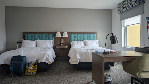 Pros: VERY CLEAN rooms, masterfully designed suites, high quality build in materials, professional light design. Lots of storage space for your luggage, coats and clothes. Lots of dining options nearby, several of which are open late, suitable for travellers. Full, free breakfast with fresh waffles, eggs, breads and several spreads is served. Rather impressive spread. Facilities onsite include a gym, indoor pool and bodega adjacent to the lobby. Rooms include coffee maker, mini fridge, microwave, office desk, TV, etc. DOUBLE sinks and vanities in the suites make it a breeze to get ready for families or groups with multiple travellers. Exceptional beds, very comfortable. Supreme views of St. Albert from the rooms. We spotted several Northern Herons from our room. Nice touch to a fancy stay.
