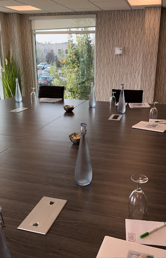 Upon arrival a very nice hotel. It is a conference Center, has a decent restaurant and rooms were a 4/5. Not very modern but clean and all the essentials. Fitness room is very basic and pool area is alright. But no hot tub or sauna to enjoy which I thought was weird. On the second day there we had our first key card incident when the key card didnât work in the elevator. Upon realizing we couldnât get to our floor we took the stairs. Turns out the stairs are all key card access too and you only get access to your floor. We again tried to key on our floor and soon realized we were stuck. One of our players had to come and let us back in. The third day we were there we had our second key card incident when we couldnât get back into our room. We left the hotel and my card was working fine and upon coming back to the hotel the key us up the elevator. When we went to use to gain access to our room the key card would turn green but the lock would disengage. We got housekeeping to try and get master fob would also not work. Then we had a front desk staff come only to realize the same thing, then she called maintenance. Maintenance came and also realized the same thing and then we had to wait for him to leave and come back with the master key. All in all about a 30-40 minute ordeal without any compensation offered. Not happy. Then later on that same day we had our third key card incident when we got locked in the stairwell a second time and had to come through the pool area and find our way to the front desk after they told us they gave my card access to the second floor because that is where laundry was located. There was a nice lounge area downstairs too and we gathered here as they hotel has signs everywhere saying we cannot gather and they have strict noise policies. When playing skip bo at 5 pm the female manager came over and told us to be quiet and that we were disrupting the front staff. But quiet hours were after 9pm. I find this very funny as the staff wasnât doing anything and you could literally hear screaming from the restaurant 10 feet away. She was not very pleasant or friendly either. Also no alcoholic drinks in the lobby but they sell liquor in the lobby. . . They say to have it in the room but you arenât to have gatherings in the room. After that we took our volleyball team for dinner and asked to sit together but was told because of our group size it wouldnât be possible. There was a different volleyball team there who were sitting all together at least a group of 15) and they said they were leaving and would give us the table. The female manager then was very rude and said no to us and that we couldnât sit as a group and could sit no more than 6 people to a table. And then on top of that we still got charged the 18% gratuity even though none of got to sit together. Seems awfully fishy to me. Not happy. Food was also sub par. Ordered butter chicken and no taste. Needed spice and salt. Breakfast was your regular mass produced breakfast and there was no decaf coffee. Upon asking if they could brew a pot for us the waitress said no. Over all female management and staff not very accommodating...