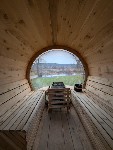 We were so fortunate to take over the entire motel with a group of 11 friends, and it turned out to be the perfect setting for us to gather, relax, and truly be present with one another. Nestled among the trees, the property offers stunning views of the river and the hills in the back, making it a serene, peaceful retreat. We made full use of the property’s fantastic amenities, including the sauna, riverfront access for a cold plunge, fire pits, and the charming parlour area. The decor in every room is gorgeous, thoughtfully designed to create a relaxed atmosphere that enhances the entire experience. The equipped kitchen was perfect for preparing meals and beverages. We also had the opportunity to enjoy a beautifully catered dinner from a local gem, Justin's Oven, in the upstairs room—such a cozy and memorable experience.