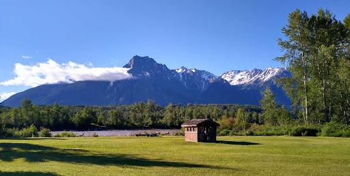 Breathtaking. Words cannot describe this place - and photos do not do justice to the beauty of the Hazelton Mountains in the background. My husband and I arrived after office hours, but were able to pull up to a large, well-groomed site right by the Skeena River to set up our tent. The owner was very friendly and helpful despite us having not booked a site in advance, and though it drizzled a few times throughout our stay, we had a perfect experience here.