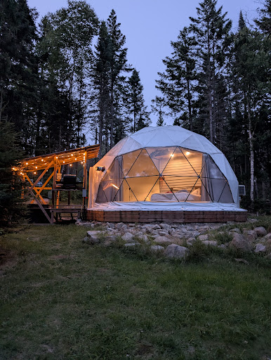 Stunning! About 10 minutes away from Mont Blanc. 20 mins away from a Starbucks, Tim Hortons, and IGA in Mont Tremblant. We rented dome 6 near the end of February 2024. Facilities were amazing. Everything you could want. There is no parking next to your facilities during the winter months, but it is only a short walk, and they provide sleds and/or wagons to pull your gear in. Fully equipped kitchen with a gas range but no oven. Single sink. Ample cupboard space. Utensils and cooking gear all provided. There was no coffee maker in our dome, only a bodum pour over. They provided some whole coffee beans, a hand grinder, and filters. We used our own coffee and made a few enjoyable cups of coffee. However I did waste a few filters by over filling the filter with water, and stirring the grinds with a spoon which broke the filter, and I had to start the process all over. That is just a personal mistake, but if you are not familiar with pour over coffee in a big glass pot you may want to consider bringing your own supplies. They provided a lovey goose neck kettle for boiling water which was nice.Hot tub was clean. Bed was soooo comfy. Room was outfitted with a Nebula projector and a pull down screen attached to the loft. There were HDMI to USB-C and lightning adapters to stream from your mobile device. We loved the Nebula projector so much we bought one on Amazon the day we drove home. Snow shoeing trails exceeded expectations. Very quiet atmosphere. The domes are positioned in such a way that they offer a lot of privacy while on the deck or hot tub. The temperature got down to -20c both nights we stayed there and the gas fire place and electric suitcase heater mounted in the loft above the king size bed kept the dome at a very comfortable temperature. There was some condensation on the windows in the morning to deal with, but opening the windows briefly seemed to help clear it up quickly. Great stay....