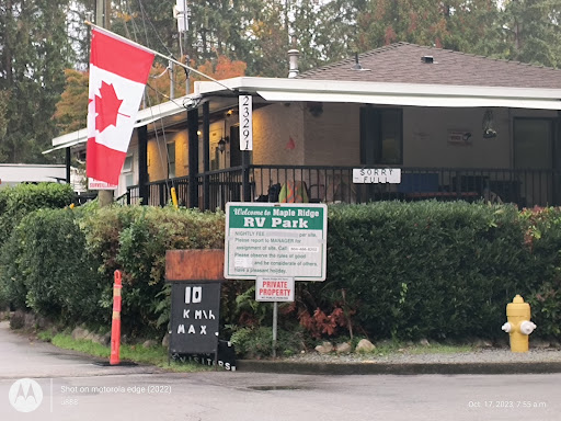 SIGN, SIGN, EVERYWHERE A SIGN! I saw the park owner discriminate against a tenant with a disability. There are intimidating (and frankly frightening) signs and rules everywhere, and the owners selectively enforce these rules for their friends. I was crying and upset, and I saw the neighbors admit to this disabled gentleman that the park owner has no idea what he's doing. The neighbors kept the park owner away from the tenant and helped the tenant finish their hookup. Good for them for standing up. - There is full hookup, but the sites have no hedges and no attempts whatsoever were made at site soundproofing or privacy, so it's like living in a fishbowl. If you choose a non hookup site, they will not allow you to use a boondocker for waste disposal so they are means-testing tenants and giving a preference to truck owners. All sounds reverberate all over the park, and certain Karen's feel the need to patrol the state of the RVs while failing to power clean their own. IMPORTANT - The landlord has a super creepy camera system in his trailer and he constantly patrols the tenants, including by zooming in their windows and recording them without their consent. I think he should let the police worry what is inside the trailers and RVs and HE should mind his business and safety. The park owner also does not allow ebikes, motorcycles, or outdoor items for tenants who are not his best buddies, so do not bring them. In fact, frankly, I would just skip Maple Ridge altogether and just stay somewhere nicer like Mission; Chilliwack; Kelowna; Hope. Even Abbotsford is nice. I especially did not like the park owner's derogatory comments about boondocker trolleys, which he called a "honey box" or something like that. Why don't you mind your business, guy? It's a trailer park, in nature. I don't get why this guy is so uppity when he has such chill tenants and such a nice location. The site super eventually banged loudly on my RV door to complain about the private conversations I was having with colleagues on my WORK CATION. He did this multiple times and instigated several worried phone calls to police. He (or his...son??) yells in his trailer, and then blames other tenants. He tried to walk it back, but I hitched up and left town first thing in the morning with the fam. It is a shame the landlord treats tenants like this. I've attached photos of the threatening sign and of his trailer, since he feels he can publish pictures of my own...