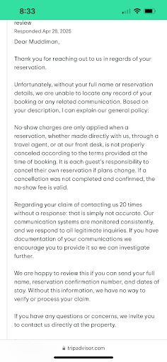 The manager gave him a 15% refund which is a slap in the face as we paid $225 for each night, one of them in a falsely advertised room.