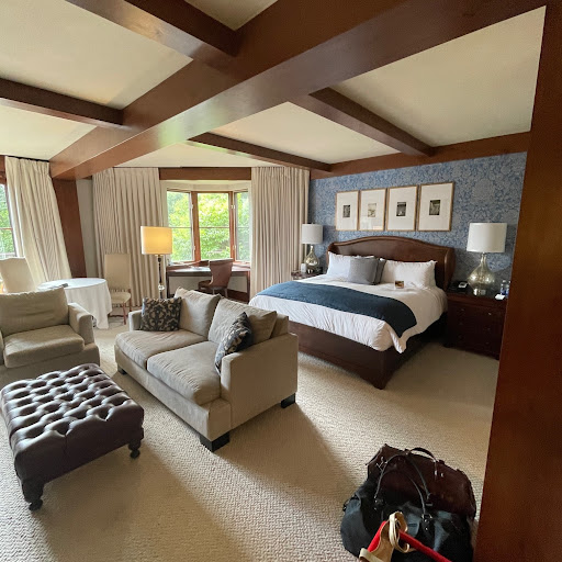 We enjoyed our stay at Hotel Quintessence. It's a small hotel with very friendly staff. The front desk staff, valets, housekeeping teams and morning breakfast employees were so kind and welcoming. The hotel lobby is small, but functional. The hotel has an outdoor patio as part of its restaurant and a lovely pool overlooking Lake Tremblant (though pool seating was not always available which kept us away from the pool one afternoon). One can rent kayaks from the hotel and leave from their dock. (The hotel helped us to rent a pontoon boat from a nearby company which we highly recommend.) ||The hotel is located across the street from the Tremblant ski area. So it's a very easy walk to its fantastic shops, restaurants and, of course, skiing. (During our summer visit, we loved taking the ski lift to the top of the mountain to take in the stunning views.)||The hotel room at Quintessence included a welcome note from management and a delicious box of chocolates. We also enjoyed the free bottles of water which were in the room each day. We were lucky enough to receive room 303 which we feel is the best at the hotel. The view is outstanding and it has a covered balcony on the third floor. The location is quiet and the size of the room fantastic. There is an immense living room with vaulted ceiling, french doors into an attractive bedroom, and a giant closet. There are pocket doors which (mostly) close to block the bathtub and bathroom area. (Luckily, the toilet is in a separate room off of the bathroom so one can use it at night without waking up one's partner.) The bed was very comfortable with high-end bedding. The room was also perfectly clean!||Our hotel package included breakfast which we highly recommend. It was stellar! (My husband highly recommends the eggs benedict and french toast.) Valet parking was also included, though after tipping, it was likely the same cost as the public parking lot across the street which I believe was $45/day.||The downsides of the room were minor - decor was a little dated, some knicks in the wood base molding, squeaky french doors and rooms that could use more lighting (especially the bathroom and shower). While the hotel is not at a Four Seasons level, it provides enough of a luxury experience (and a stunning view) that it can be easily recommended over the nearby Fairmont (whose lobby and common areas presented and tired and chaotic).||We would have rated the hotel as a "5," despite the minor downsides mentioned, were it not for our disappointing dinner experience. ||The atmosphere in the restaurant at dinner was so different from the relaxing breakfast scene. In the evening, the mood was tense and stressful, with restaurant staff literally running breathless from bar to table to kitchen. The staff seemed so very overwhelmed; I thought our server was going to cry due to the stress. It took 20 minutes to be served a beverage; there were mistakes with the meals; and the food was just satisfactory. The negative atmosphere at dinner was palpable and its stressful environment so contagious that we just needed to leave. We arrived at the restaurant so content and relaxed, but it made us feel so stressed that it impacted our view of the hotel overall (and reduced our rating from 5 to 4 stars). I am hoping this restaurant experience is not usual and that perhaps they were just short-staffed, but there was truly no happiness in that restaurant that night; and that's a culture issue; perhaps a tyrannical manager/chef who keeps employees feeling stressed and afraid? My heart went out to the restaurant staff. (In contrast, the dinner at La Brasserie Des Mercenaires - about a 15 min. drive away - was such a joyful environment and deliciously memorable).||So, in sum, we recommend the hotel (and room 303 in particular, though any room on the 2nd and 3rd floors would be fantastic if you wish a large room with a view) and we loved the hotel's breakfast, but avoid the...