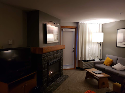 Certainly not worth $200CAD/night. Now first thing... we love skiing and snowboarding at Mont-Tremblant as it is an incredible ski area, so I don't want you to relate this review with the skiing experience itself. We will return to Mont-Tremblant, however we will likely never stay there again due to our experience and the resorts failure to meet expectations for the price paid. Please refer to the pictures below as I walk you through our experience as well as the low-quality room we stayed in. Have you ever heard of a 4pm check-in time? -me either... in fact I regard this as being quite late. Most hotels and rentals allow check in at or soon after 1pm. Although I did not like this, we still booked knowing the check in was late. What did not sit well with us, was that when we proceeded to check-in at 4pm. We were told that the room was not ready yet, since it was pending inspection, and that it should be ready in about 10 minutes or so. 10 minutes later we were told that our room was still not ready and that it would be about a half hour. What!? Hmm... so the hotel operates on an 11am check-out time and a 4pm check-in time cycle but the small 400sqft studio room was unable to be readied during the 5 hour period?? This is unacceptable when I have paid a $200CAD/night sticker price (mind you that price was at a 25% off rate!!!!!). Needless to say it was NOT a good first impression to keep us waiting in an overcrowded lobby (with ski gear on -the lifts close at 4pm) with no room to sit for an hour and a half... Yes, you heard that right, we could not get in the room until 5:30pm. This pushed back our dinner into the high traffic times of around 630pm since we had to unload everything and get cleaned up from skiing, and by the time we were finished with dinner and drinks, we were only able to use the hot tub for about a half hour since it closed at 10pm. Moving on to the room. I don't think the bathroom lamp shades and the hair dryer have ever been cleaned and the bathroom floor/tub grout was in need of replacement due to the level of mold & scum in it. Check out that lamp hanging over the dining table :D... Wow... I mean seriously? -It is hanging from its own cord? Is that even up to code? I have never seen a set up that was that incredibly tacky in all my time staying in hotels/rentals, heck, the plug is even up-side-down. How did this get approved? FYI the brick on the fireplace is fake.. its some sort of foam material that was just painted over #cheap. Why is the picture above the mantel a "centerpiece". Its a black and white photograph of the resort that should be on the wall somewhere. Instead its exactly where the TV should be. Now lets talk about the TV. First off. You can't see the TV from the bed and the couch at the same time because of its poor positioning (again, it should be above the fireplace where the picture is), you have to choose either the couch or the bed, then manually scoot and angle the TV toward your choice of seating. Last point I'll make... There is a small "divider wall" if you can even call it that... which lies between the couch/living area and the bed. The mantel sits on top of it, its not fastened at all -wow #cheap. Anyway, I think that literally any room you find off the resort is a much better deal that what you will pay to stay at the resort. The quality of service and infrastructure is just simply not there. I hope this review helps shed light on the problems going on here and I hope it will help fellow skiers and boarders to stay clear of...