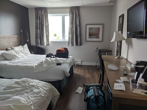 Read moreI arrived here after a long drive from Niagara Falls Ontario. I spent approximately 10 hours driving, until I called it quits and decided to stay at a hotel with a warm bed for the night. This hotel was the cheapest around, at 130$ a night. Another hotel I looked at was the same price, except they had complimentary breakfast. When I arrived, I was greeted kindly by the receptionist whom spoke French but could speak English as well. After getting into my room, I was unpleased with the cleanliness. (I have worked housekeeping for many years previously and am aware of how difficult it is as a job) but, having black hair scattered across the white floor tiles and sink is something that should not be missed. I continued to ignore all the hair however, orange stains on the bath tub caught my eye instead. I continued to ignore as I climbed into bed for a good nights sleep. This was not as pleasing as I was looking forward to. The duvet covers are not washed often and the mattress is hard as rocks. I tossed and turned all night and was unable to get a good night sleep that I paid 130$ for. I will mention, that when you arrive here at night time that you are in for a surprise in the morning. I woke up to a beautiful view of the mountains in the background. This put a smile on my face, as I ate my breakfast and prepared for...