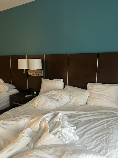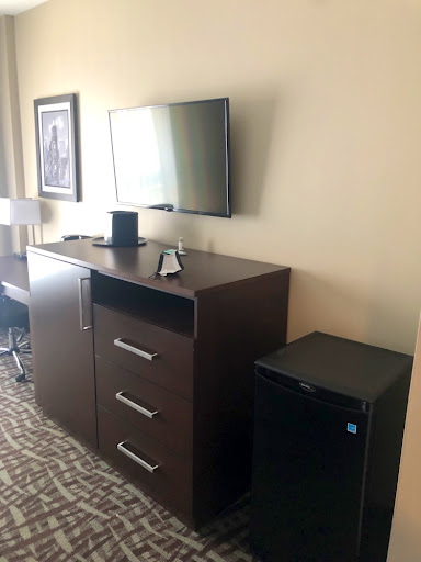 Here is a list of other notables in no particular order: Large lobby with a variety of seating options, with a multi-purpose hot beverage maker, tea service and water machine. Spacious rooms with high ceilings and in-room mini fridges plus Keurig machines. Bedding that makes you never want to sleep anywhere else ā- from the mattress, to the pillows, to the sheets ā- all pristine, fresh and new. Large glass walk-in showers and large windows. Wide flat screen TV, with cable and efficient wifi service. Modern central air and heating. Grab and go breakfast that comes in handy, so you only have to think about lunch and dinner. Central location with a bunch of shopping and food options within walking distance.