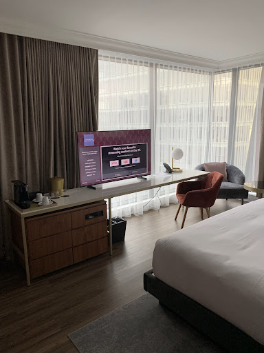 Read moreWe stayed here for 3 nights from September 17-20, 2024 in room 601, a junior suite. My partner previously stayed here last September just after it opened and he really wanted to stay here again. We travelled from Nova Scotia. The public/shared areas of the Honeyrose are beautifully designed and the attention to detail can be seen everywhere. I really liked the elevators and hallways leading to guest rooms. I would recommend they get rid of the fake greenery that hangs from the upper walls in the lobby, it’s a little tacky compared to everything else. Other than that it’s all quite sophisticated. The rooms are white, pink and minimalist….an extra comfy chair in the living areas would be a nice addition and maybe a little more art on the walls. The room tv divider was fun to use… I felt like Vanna White spinning the tv around. The bed was extremely comfortable and the pillows were perfect for my comfort. I got used to the shower being so exhibitionist friendly, but I disliked the toilet cubicle… it needs to be soundproof and it definitely wasn’t…too bad. The bathrobes were a favourite….very nice quality as was the hairdryer. The towels wouldn’t dry too well and we had to ask for new ones… which took 2 attempts over 2 days..a negative. The vanity area was very large as was the closet space. Our suite was just overlooking the fifth floor eating/drinks/party area outside. Only on the last night was noise from there a problem. A private event being held there lasted 5 hours until 11 and was quite noisy…keep this in mind when booking rooms nearer that area. The hotel restaurant is nice too, especially for cocktails and breakfast. The location was great for us as it was close walking distance in all directions. If bringing a car, keep in mind the underground parking is very tight, very tight indeed. The best positive was the bed, like I said, I slept very well…the negative was the toilet cubicle..I do wish they would change that. Overall, I...