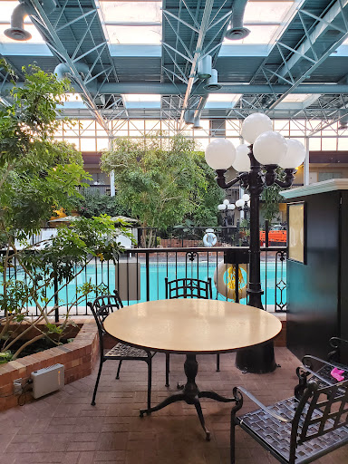 This hotel, located on Lundy Lane, is 1.5 miles from the falls. It is designed and catered towards families. It has a courtyard pool with a tropical feel with multiple trees and shrubs, many TVs, chairs, loungers, and tables. There is a decent size pool, and 2 hot tubs. One of the hot tubs was not working. We could never get into the hot tub that was working as it was always full of kids and adults alike. There is an arcade, and a kid's play area around the pool area. The hotel has a golf lounge and bar for your entertainment. The pool was not as warm as advertised. And the hot tub was lukewarm at best. The hotel has an Irish Pub, Doc Mcgilligans, and open for breakfast, lunch and dinner. It has live music on Fridays, Saturdays and Sundays. Food is pretty good. There is no complimentary breakfast included. However, when choosing a room, you can choose a package deal that includes breakfast. Lack of complimentary breakfast turned out to be a disappointment for me. I enjoy my morning coffee, orange juice, yogurt or muffin, and fruits that are included with other hotel chains.
