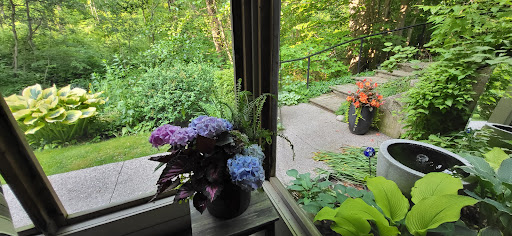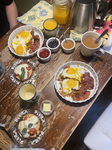 We stumbled across Bushy House by accident as we needed a last minute lodging prior to traveling on to Toronto. And what a find it is!!! The owners, an artist and architect have created two homey, lovingly well-stocked rooms. Breakfast comes with the room rate..but more about that later.||||Three of us shared the Lewis suite, a beautifully appointed bedroom and sitting room complete with small kitchenette, dining table and a workable fireplace to chase away the evening's chill. There is a small screened in porch accessed from the living room.||||I'm am not a lover of sofa beds; however the sofa pulled out into a very comfy bed..I was surprised, to say the least. Little decorative details are everywhere you look....water and juice stocked refrigerator; shower shoes and thick, fluffy towels in the bath that is complete with a clawfoot tub/shower combo. But watch out...the tall step into the tub/shower is not for the faint of heart.||||I promised I'd talk about the breakfast and what a true delight in every way. I awoke to the most delicious baking smells and at 9am, Jodie knocked on our door with a large wicker basket that held yogurt parfaits, organic coffee in a carafe, jams/jellies/honey and freshly squeezed orange juice. After we set the table and enjoyed the coffee, Jodie brought down three large wedges of frittata per person along with a side of bacon. I insisted she take a piece of my frittata back to enjoy with her coffee..no way could I eat all that and didn't want it wasted! We lingered, taking our time enjoying every last bit.||Too bad the pictures aren't scratch and sniff!||||We were also given a tour of the outside gardens, which will be so lovely once late spring and summer arrive with all the bulbs blooming. The owners also purchased and renovated another home directly behind their BnB and we also toured that as well..Bracken House easily fits 8 guests for a family stay.||||Stay here..you will not be disappointed..from the farm fresh eggs that Jodie collects for breakfast and also sells, to the well appointed rooms and the over-the-top...