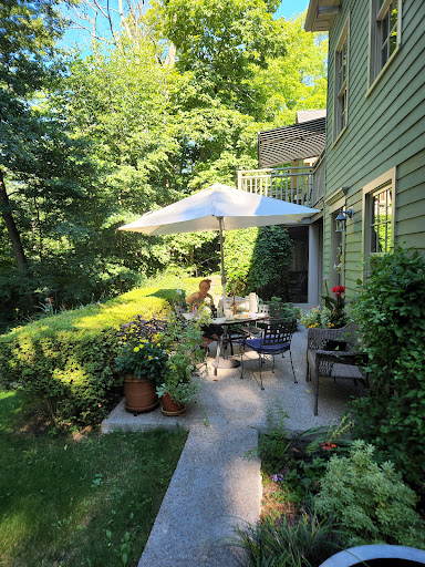 Read moreIt was our first visit but definitely not our last. We were welcomed with a small bottle of wine in the refrigerator and a note wishing me a Happy Birthday. When we asked about cab companies in the area, our hostess offered to drop us at the winery so we would only need a ride back. Our breakfast was amazing, farm eggs, smoked bacon, freshly baked scones with home made preserves, freshly squeeze orange juice and coffee. The cost of our 2 gourmet breakfasts made the cost of the room a real bargain...especially at Niagara on the Lake. On our way out the door we received cookies hot out of the oven for the trip home. The room likewise was filled with warm country charm and our own kitchenette and bath. The unexpected bonus was the private patio overlooking the wooded backyard with its beautiful flowers and not a house in sight. You would never think you were 5 minutes away from the busy downtown. What a wonderful retreat. We left refreshed and excited thinking about the long list of friends and family we were eager to bring back here. Can't...