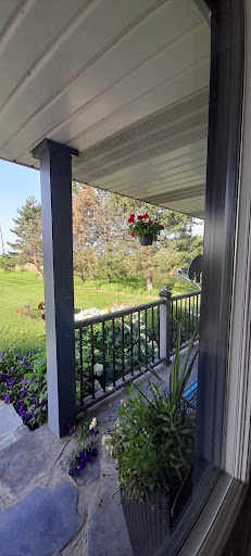 Country Side B&B was very nice. We had the main floor suite with our own sitting room.||We brought our dog as he was allowed. What we did not count on was how he made strange !!! We could not leave him in the room alone because we felt he would just bark with anxiety and annoy everyone||Breakfast was geared to another couple of which the wife was vegan. My husband looks forward to sausages and eggs etc. No, not getting that. To be honest, I quite liked the breakfast of fresh fruit from the farm, waffles with peach preserves, peach muffins, fresh cherry juice and coffee.||We did not even make it to Niagara on the lake, but a smaller town where we stopped at the local ice cream store and devoured delicious ice cream, I think from Kawartha Dairies.||My sleep was interrupted by our dog arguing with a K Cup of coffee wrapped in gauze. He dug that out of the garbage. I got up to see what the grunting and growls were all about and I saw Harry (dog) had something backed into the corner by the door. Without my glasses on, all I could make out was a fuzzy grey thing in the corner with a bunch of dark stuff all around it. holy Hannah !!! I thought he had caught a mouse !!!||Being the braveheart that I am, I grabbed my umbrella and started poking at the grey mass. Finally, I was close enough to realize that what he had wrestled with was a K Cup coffee pod with the coffee scattered all around||I have failed to mentioned, mind you, that Harry is a twenty five pound Bichon with no more bravery than I have.||All in all, we did enjoy our one night stay and next B&B foray will be...