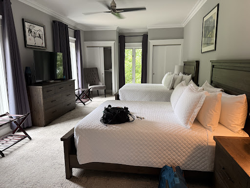 Read moreMy partner's birthday getaway could not have been better located than at Somerset! I'm a casual photographer, and this place is a gem for picturesque shots, so I had LOTS of fun doing what I do too. ||Here's our breakdown||The room: Our suite was in the West Wing (yes, I watched the series too), with 4 spaces including: the massive bedroom, living area with bar and foyer, the balcony and very spacious bathroom. Everything was sparkling clean, luxurious, comfortable and extremely well appointed. There was original artwork, an additional Juliette balcony, his/her closets and the list goes on and on! Very comfortable linens, high-end amenities and stunning views of gardens and the lake to boot.||Our host: Darren is a thoughtful and genuine human being. He went the extra mile to arrange for special treats of chocolate truffles, fruit, wine and beer in our room upon arrival. The tour that we were offered of the property was full of history, ideas while we are here, amenities that were not obvious and the warmth and friendliness that we might feel when we are welcomed at home. Darren was also helpful with our luggage, freshening our room, retrieving items that I had left outside lol and just sharing his life and experiences with the gorgeous area that is NOTL. He is a welcome fixture for us at Somerset.||The common area: I'm not sure how they made such massive spaces so cozy and homy, but here we are. The entryway is massive and has a curved stairway leading to the suites. The living area is located with views and passage onto the lake. There are cards, an open bar and seating you may never want to get up from. The dining area was equipped with fruit to snack upon and a massive table with again, views and passage onto the lake.||The property: This is the only b&b that backs onto the lake. The back deck is brimming with flowers and has 2 patio table set ups, one in which we had breakfast upon, but it's the view that is the star. There is a massive grassy hill leading to Adirondack chairs to watch the ships go by, or the setting sun light up the fort across the way. The beach has rocks to skip back into the lake and borders a public park. If able, you can skirt over the rocks and...