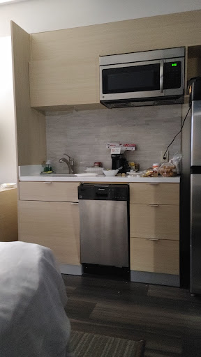 On the plus side, the fitness center, small but decent, is available 24 hours. Guest laundry is also, though they only have one washing machine and one dryer, $4 to wash, $4 to dry. Hot breakfast is good with a fairly decent variety, but the eggs and so-called omelets were not super great, they felt overcooked, dry, and when I peeked behind the curtain into their kitchen storage room, I could see why, after cooking a tray, they just left it out at room temperature until it was needed in the next room. Gross, and probably not sanitary. See picture.