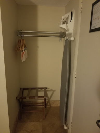 Cons: The smell in the room was HORRIBLE. It was stale and musty. I had to immediately open the patio door to let some fresh air into the room. I honestly was worried about my clothing in my suitcase smelling like the room so I had to seal everything up so it wouldn't. The patio door had a screen on it but the locks to hold the patio screen up to let the air flow through were stuck/painted over so I had to open the whole patio door with the patio chair. I went back to my car to get another item for the evening and I looked up and could see that there were several other rooms that were doing the same thing. Airing out their rooms as well. There were several hairs in the bathroom - on the walls and in the shower. There is a vent on the ceiling in the bathroom which is basically in the shower with you. It made me think that perhaps there could be a camera in there or something as it's literally in the shower with you and I found that very odd and kind of creepy. I took a little peek to see if I could see anything and all I could see was dust and a lot of debris. Needs to be cleaned out! I thought, yuck, I'm breathing that in. I never took my Crocs off once I entered the room. I had my outdoor shoes, which I took off and changed into my Crocs, because the carpet was quite moist and smelly. This may have been what was contributing to the smell in the room as well. There were a few K-cups for coffee that were available but no tea bags at all. Once I turned the lights off and got into bed, I laid down in the bed (I had two Queens and was laying down in the one closest to the patio) and there was a SUPER BRIGHT red light and two SUPER BRIGHT green lights that were shinning directly into my eyes from underneath the desk. They were the lights on the power bar which powered the coffee maker and TV perhaps? It was located underneath the desk. I had to turn off the power bar in order to turn the light off. I have a photo to show how bright the lights were that were literally BEAMING into my face. Really bad placement of the power bar. There wasn't a breakfast buffet that was included. First time that has ever happened. The hotel was attached to a Denny's and they offered Choice Hotel guests 10% off, which is literally nothing. So I was quite disappointed once I found that out. It does look like they are beginning to renovate this area so I'm hoping they include a breakfast buffet area.